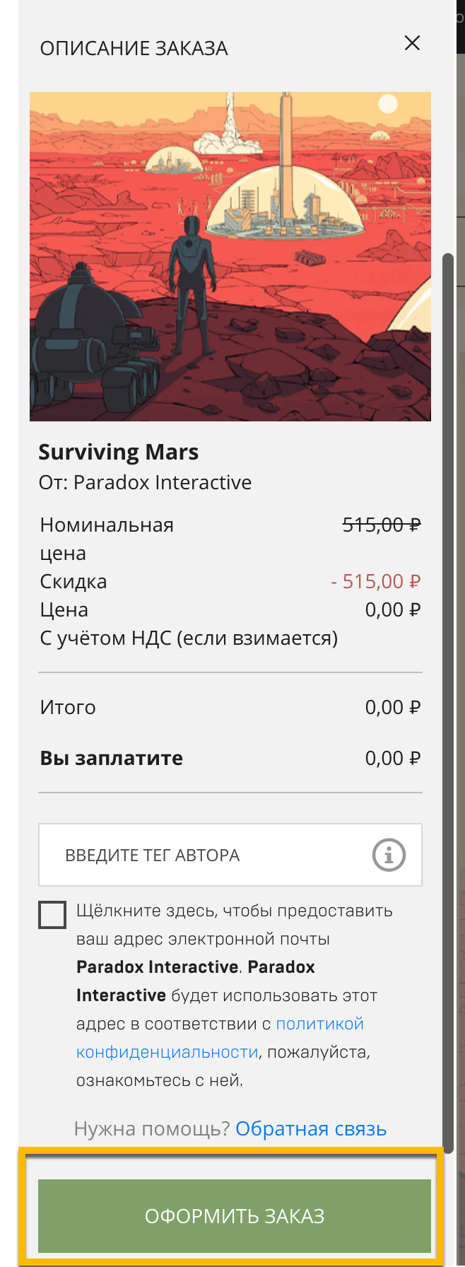 Для получения бесплатной лицензии на игру «Surviving Mars» выполните следующие действия: