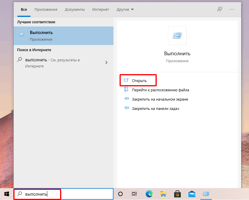 - Нажмите комбинацию клавиш Windows + R или откройте меню Пуск, введите команду Выполнить и нажмите Открыть.