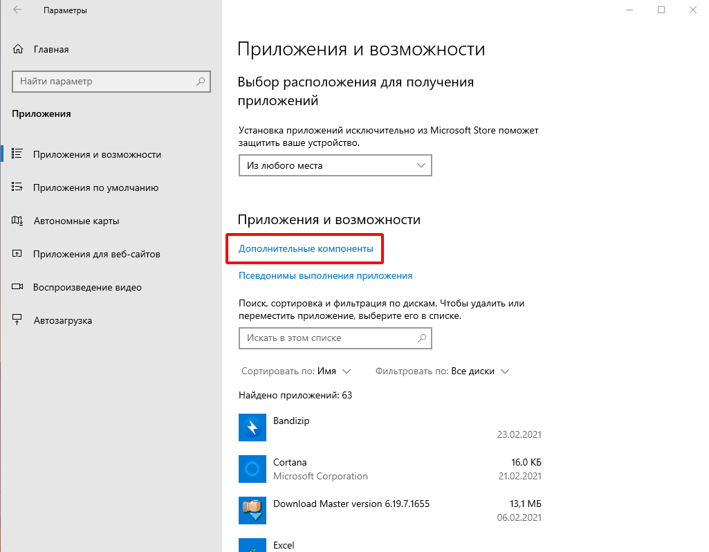 - Откройте меню Пуск, затем Параметры > Приложения > Дополнительные компоненты (или Дополнительные возможности) > Добавить компонент.