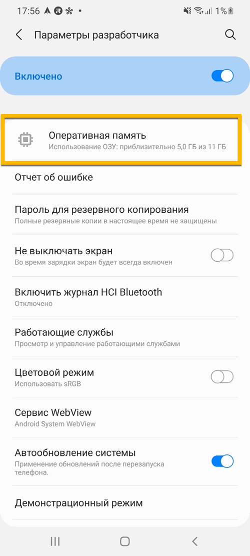 Примечание: если вы не включили меню «Для разработчиков», то вам нужно сделать это сначала. Откройте Настройки > О телефоне, прокрутите страницу до записи Номер сборки и кликните по ней 7 раз. Вы получите всплывающее уведомление, что параметры для разработчиков включены.