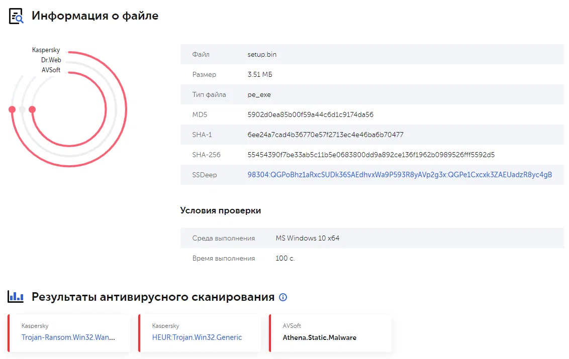 По результатам проверки будет отображена информация о файле и его безопасности: