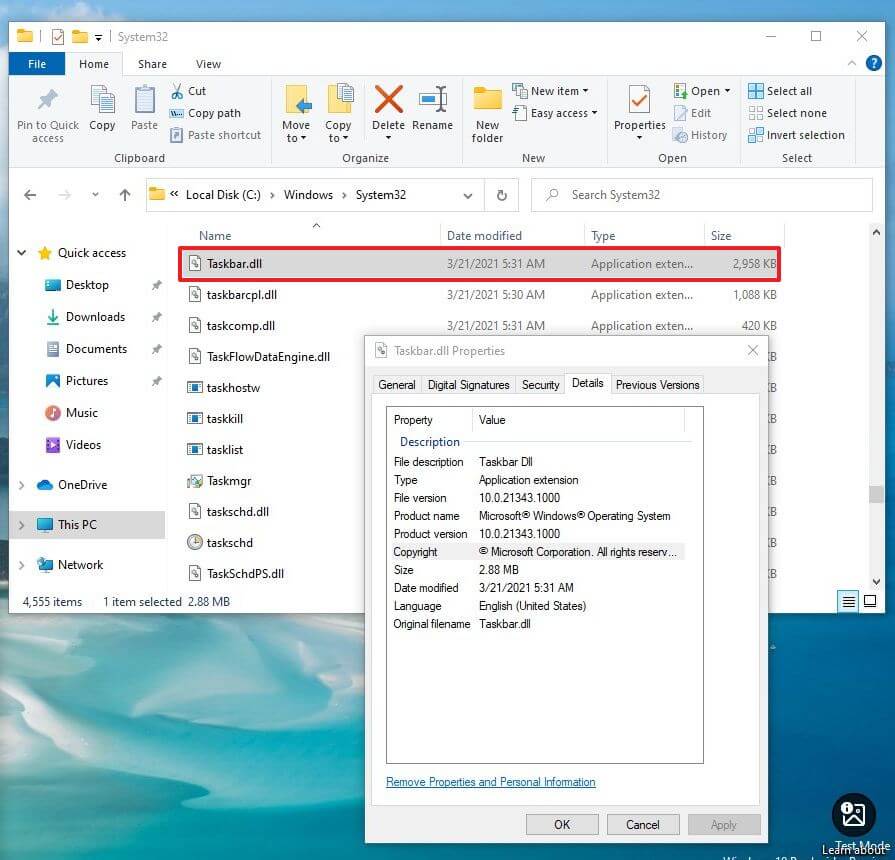Более того, Albacore заметил, что панель задач будет перемещена в отдельный процесс. До сих пор панель задач была частью «explorer.exe», но после сборки 21343 процесс перемещен в taskbar.dll: