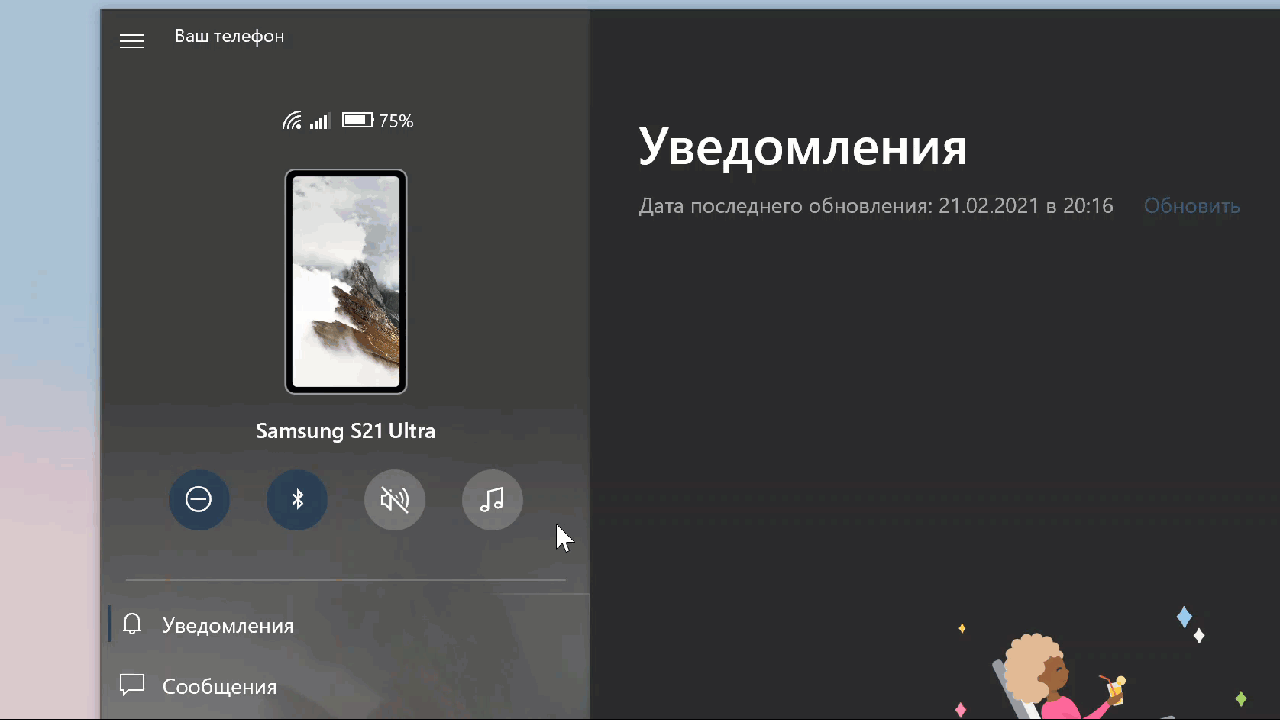 В приложении «Ваш телефон» в скором времени появится индикатор состояния подключения смартфона к компьютеру. Пользователи иногда сталкиваются с проблемами при попытке подключения смартфона к компьютеру с помощью приложения «Ваш телефон», поэтому наличие четкого индикатора того, подключено ли устройство, будет долгожданным дополнением.