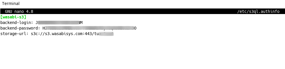 nano /etc/s3ql.authinfo