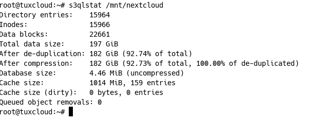 Где tuxcloud – это название вашего бакета, а /mnt/nextcloud – папка монтирования файловой системы s3ql.