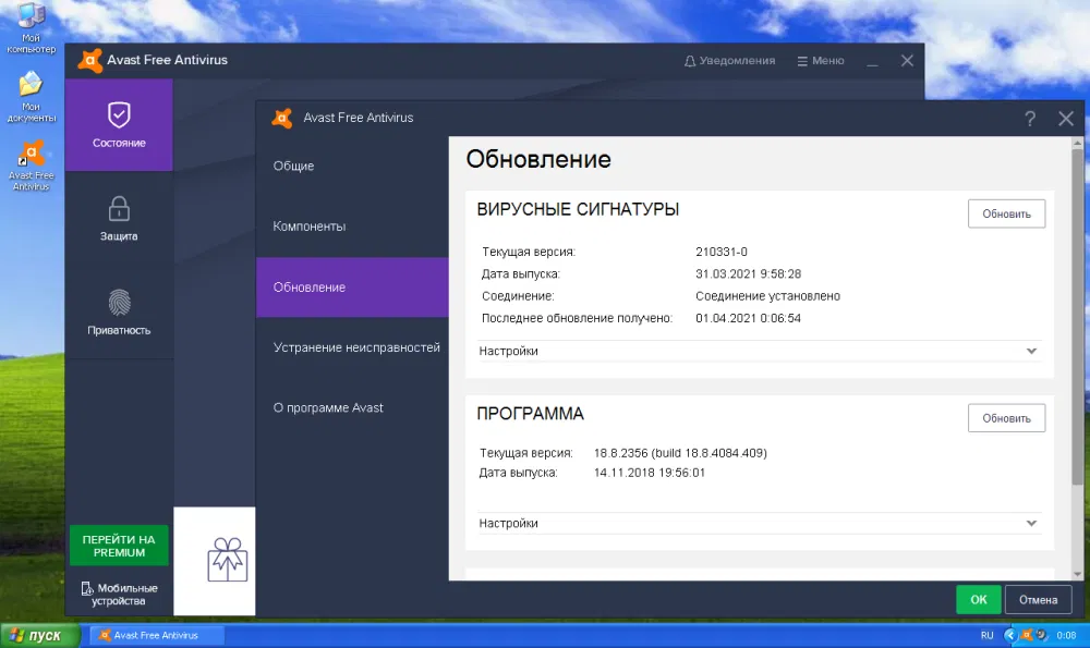 Проверим, какие бесплатные антивирусы и их версии ещё актуальны в 2021 году и имеют поддержку Windows XP. Для этого установим их и проверим, получают ли они обновления вирусных баз, а также поищем официальную информацию вендоров о поддержке Windows XP. Для теста, мы будем использовать операционную систему Windows XP SP3 (32-bit) со всеми установленными обновлениями системы, по состоянию на 1 апреля 2021 года. В обзор не попали антивирусы, которые выдавали различные ошибки во время и после установки, ошибки при попытке обновления баз, или ошибки соединения с сервером обновления.
