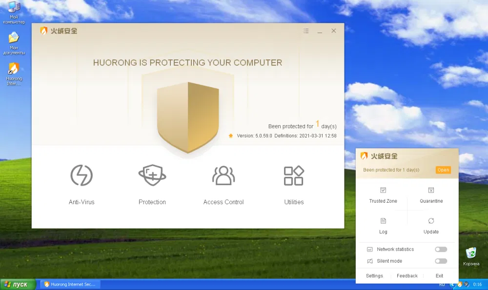 Разработчики антивируса Huorong Internet Security официально поддерживают Windows XP, поэтому для установки доступна новейшая версия антивируса Huorong Internet Security. Вирусные базы и сам антивирус продолжат обновляться, пока разработчики не сообщат о завершении поддержки Windows XP.
