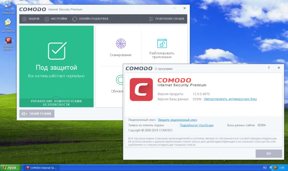 Comodo Internet Security Premium - комплексное решение безопасности, включающее антивирус, сетевой экран, интернет защиту и песочницу. Последняя версия антивируса с поддержкой Windows XP это Comodo Internet Security 12.0.0.6870. Эта версия, выпущенная 9 июля 2019 года является официальной последней версией для Windows XP.