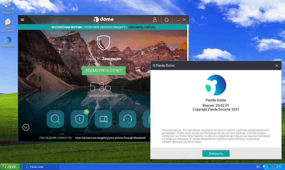 Антивирусные продукты линейки Panda Dome официально продолжают поддерживать Windows XP. Бесплатный антивирус Panda Free Antivirus с облачным анализом доступен для установки и получает регулярные обновления до новых версий и обновления вирусных баз.