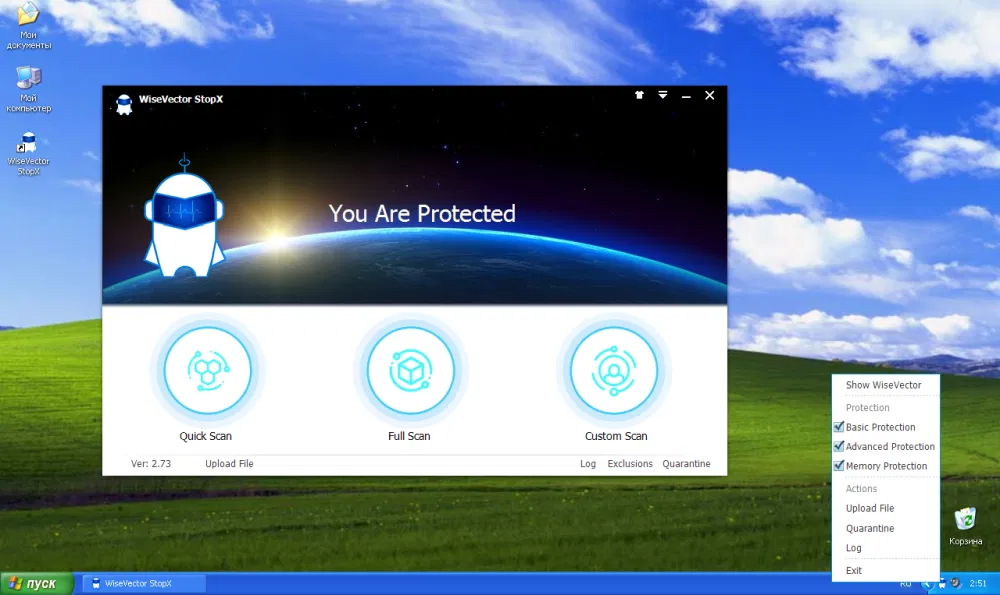 WiseVector StopX – бесплатный антивирус на базе искусственного интеллекта c защитой от вирусов и новейших угроз в режиме реального времени. Новейшие версии антивируса официально поддерживают операционную систему Windows XP.