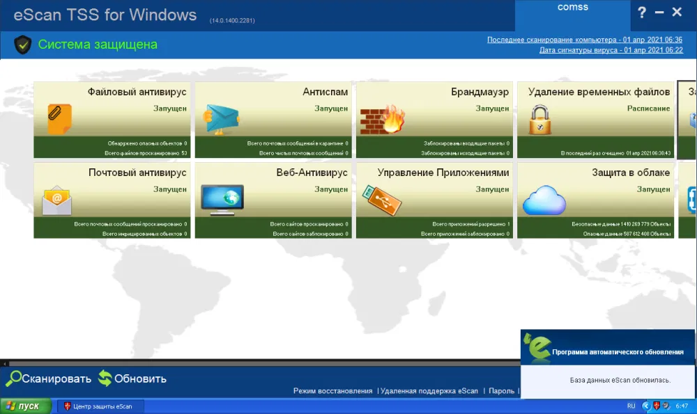 Комплексный антивирус eScan Total Security Suite, включающий облачные технологии, фаервол, родительский контроль и контроль приложений также поддерживает установку и работу в операционной системе Windows XP.