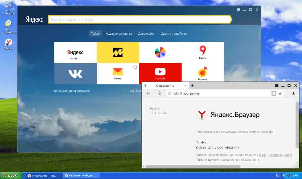 Компания Яндекс объявила, что Яндекс.Браузер 17.4.1 будет последней версией с поддержкой Windows XP. Яндекс.Браузер основан на кодовой базе Chromium и включает интеграцию с различными сервисами Яндекса.