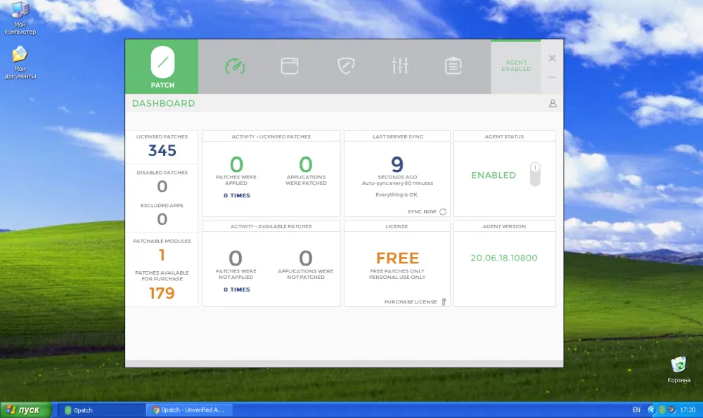 0patch Agent имеет платную и бесплатную версии. В бесплатной версии доступны патчи для уязвимостей, затрагивающие преимущественно домашних пользователей, а также патчи для исправления уязвимостей нулевого дня.