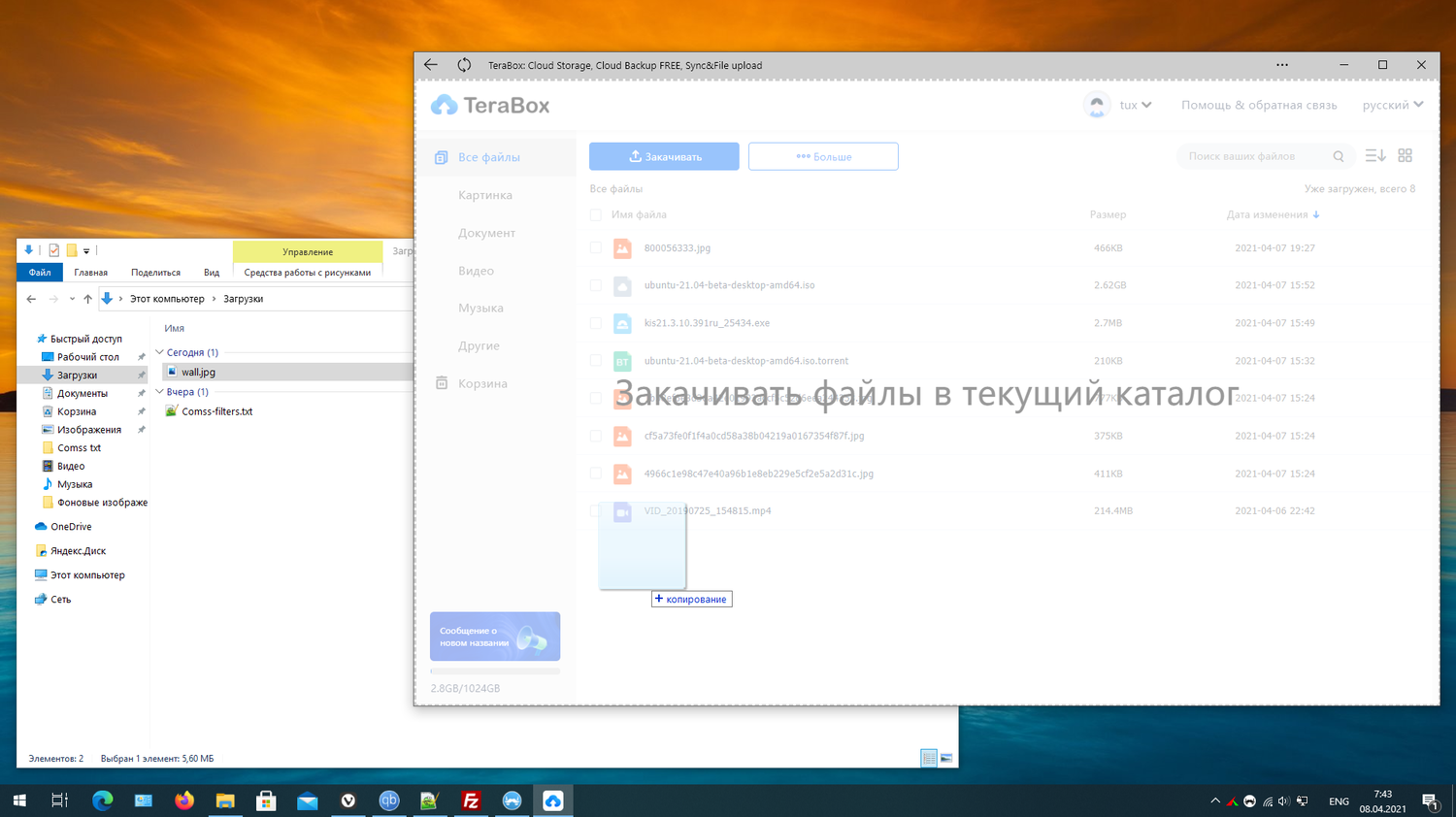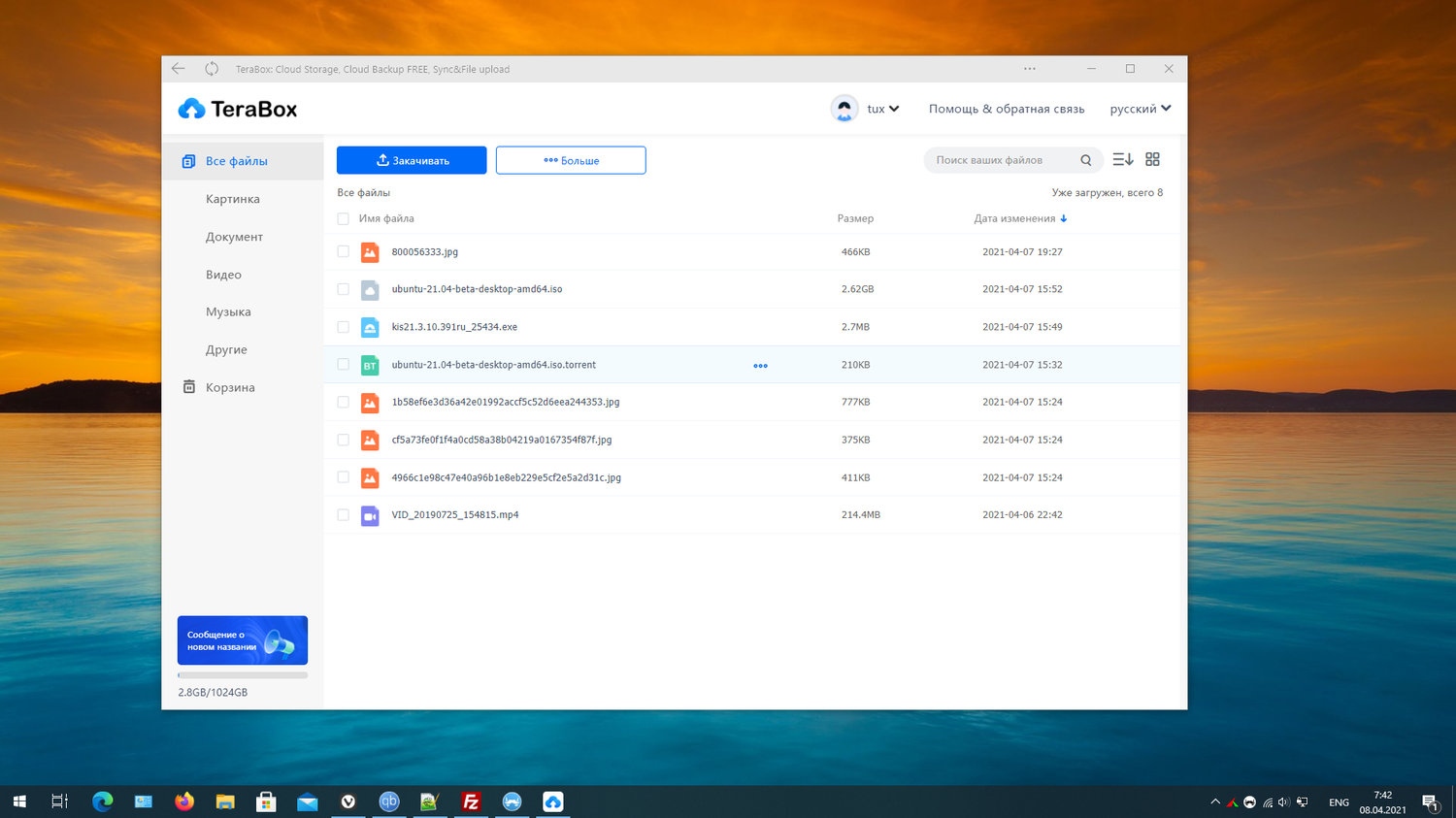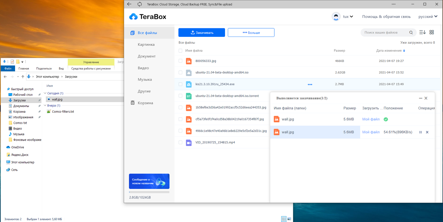 PWA приложение TeraBox, как и веб-версия, позволяют загружать не только файлы, но и папки.