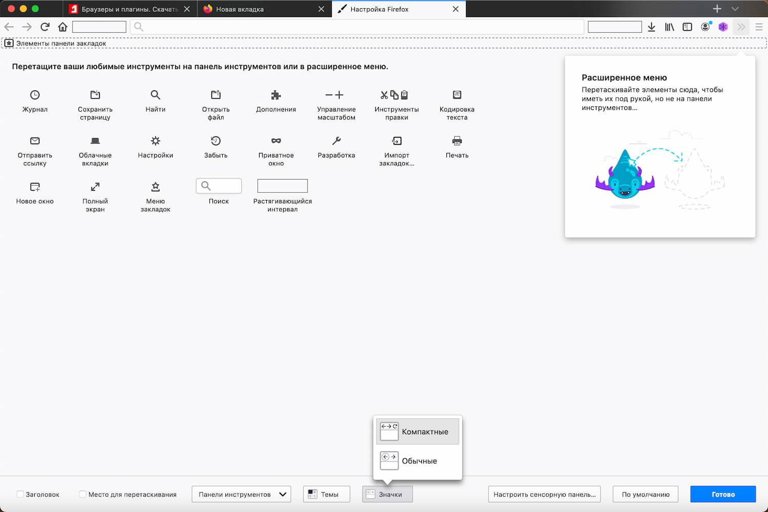 Кроме того, Mozilla собирается подчеркнуть, что компактный режим больше не поддерживается, добавив соответствующую фразу (не поддерживается) в меню персонализации.