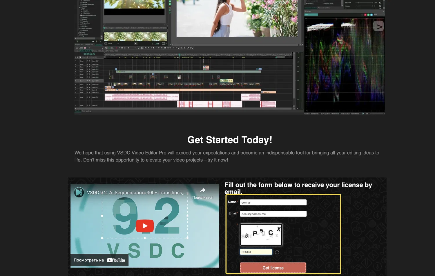 Для получения бесплатной лицензии VSDC Video Editor Pro на 1 год выполните следующие действия:
