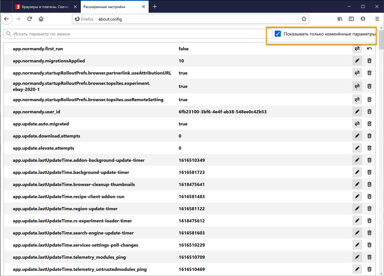 Измененные параметры ранее отображались на about:config жирным шрифтом, то до сих пор в Firefox не было возможности вывести только их. Было обходное решение, когда измененные настройки можно было вывести с помощью инструментов разработчика, добавив фильтрацию по начертанию шрифта. Однако, это не самое удобное решение.