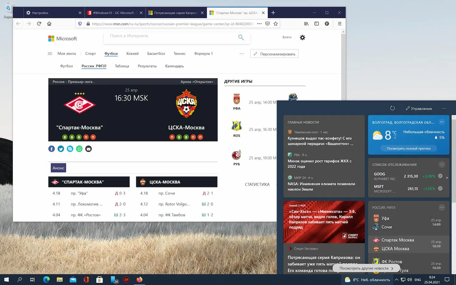 Открываем ссылки виджета «Новости и Интересы» в веб-браузере по умолчанию