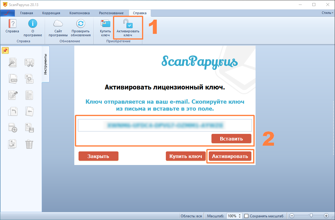 2. Активируйте программу в меню Справка > Активировать ключ, введя следующий ключ активации и нажав Активировать: