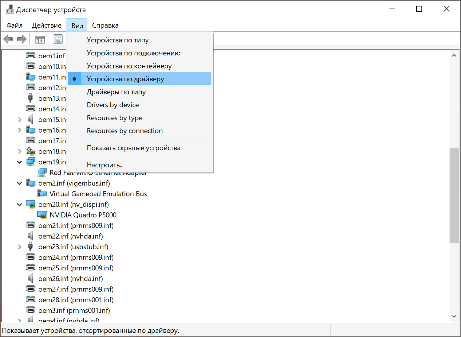- Устройства по драйверу: перечисляются драйверы и устройства, использующие файлы .inf. Опция помогает идентифицировать устройства с помощью определенного драйвера. После того, как вы определили драйвер, вы сможете немедленно удалить его.