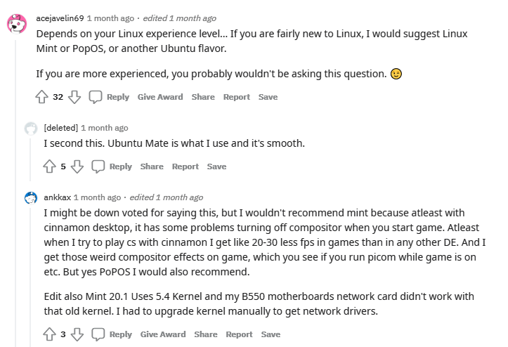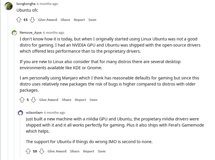 Я был приятно удивлен тому, что в популярном сообществе linux_gaming, форума reddit, на вопрос выбора операционной системы Linux для игр, чаще рекомендуют именно Ubuntu либо Pop! _OS.