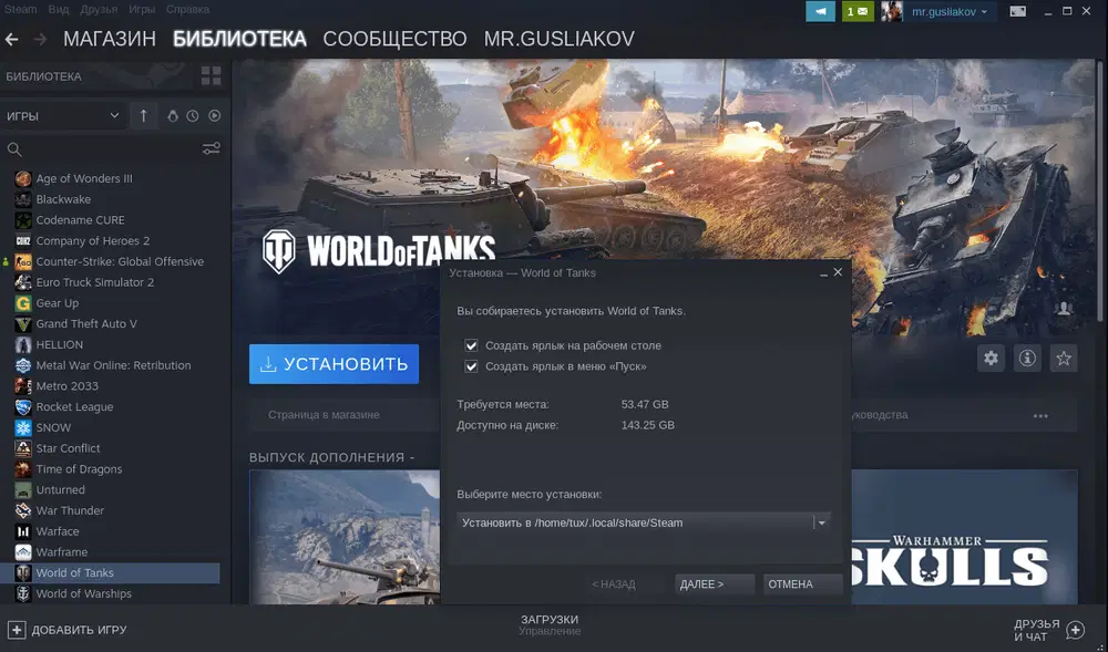 Иры World of Tanks и World of Warships доступны в Steam. Установить и запустить данные игры можно с помощью Steam Play (Proton).