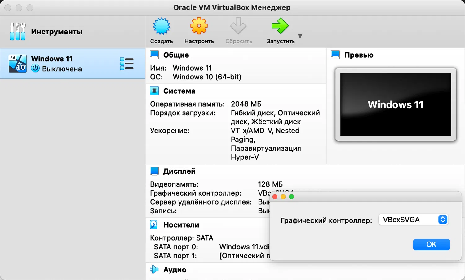 Если вы выбрали неправильную версию Windows, то данный параметр может быть настроен некорректно. Вам нужно будет зайти в настройки виртуальной машины и выбрать VBoxSVGA в качестве видеоадаптера в настройках дисплея. Это позволит выделить достаточно графических ресурсов для вашей виртуальной машины для беспроблемной установки Windows 11.
