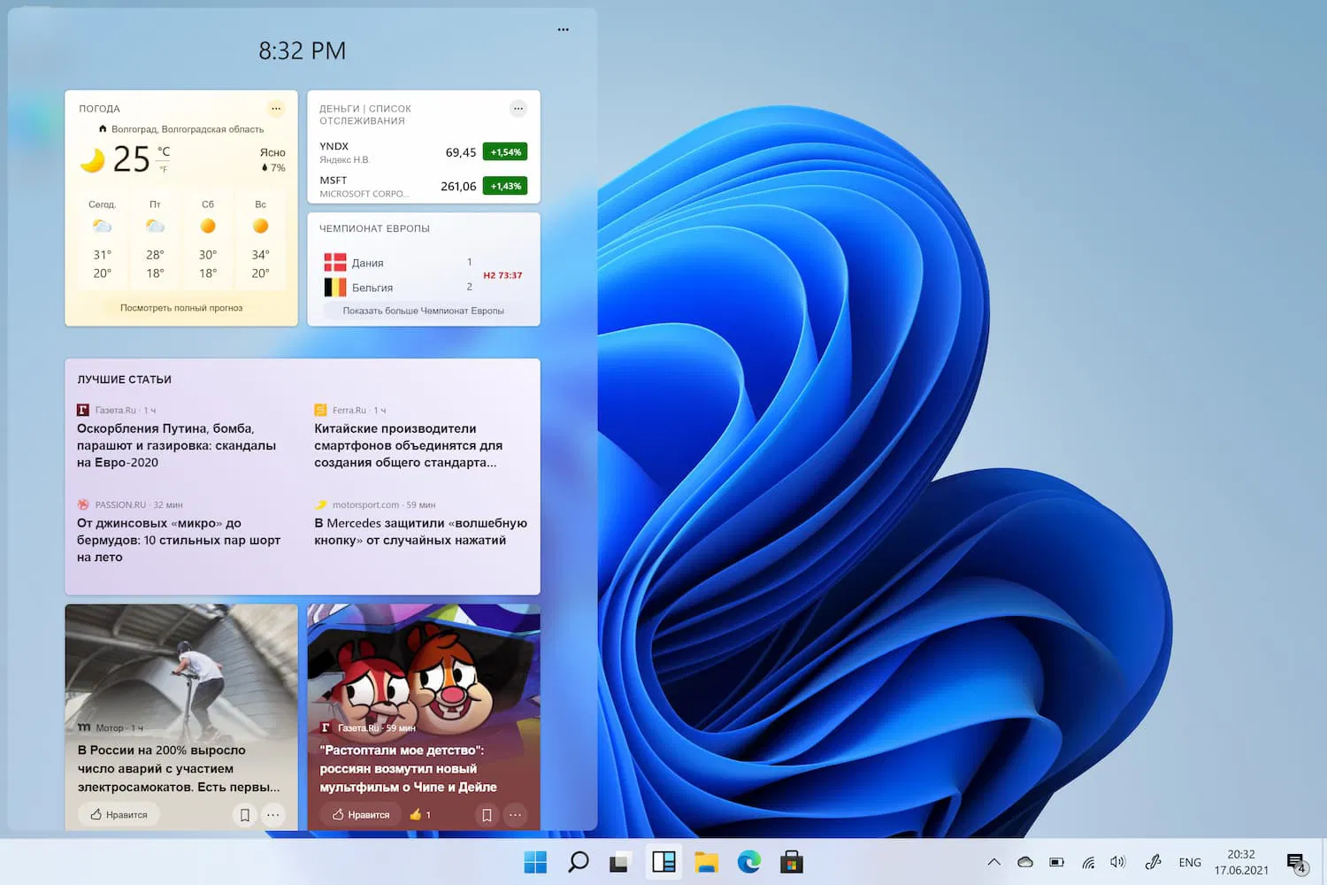 В Windows 11 функция «Новости и Интересы» из Windows 10 была переименована в «Мини-приложения (Виджеты)» и получила новую кнопку на панели задач.
