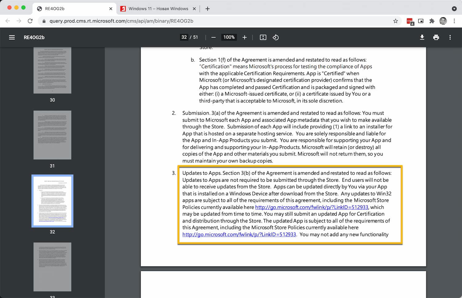 Обновления приложений. Раздел 3(b) настоящего соглашения был изменен и теперь гласит: обновления приложений не будут распространяться через Microsoft Store. Конечные пользователи не смогут получать обновления из магазина. Приложения, установленные из магазина, могут быть обновлены напрямую через ваше приложение, которое установлено на устройстве Windows.