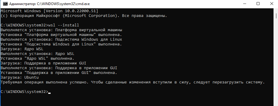 В новой версии Windows 11 разработчиками Microsoft упрощен механизм установки компонентов WSL. С использованием лишь одной команды можно установить подсистему Windows для Linux, платформу виртуальной машины, ядро WSL, а также дистрибутив Linux.