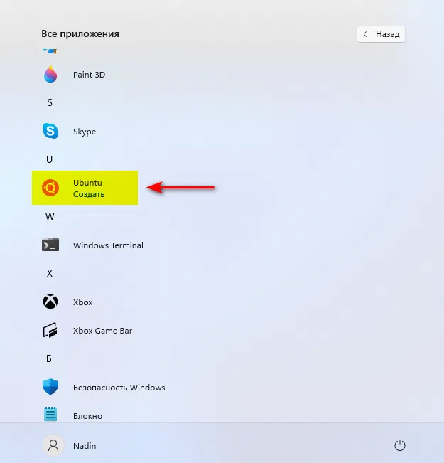 - открыть меню Пуск > Все приложения и выбрать, например, Ubuntu