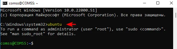 - в командной строке или Windows Терминал ввести название установленной Linux системы, например,