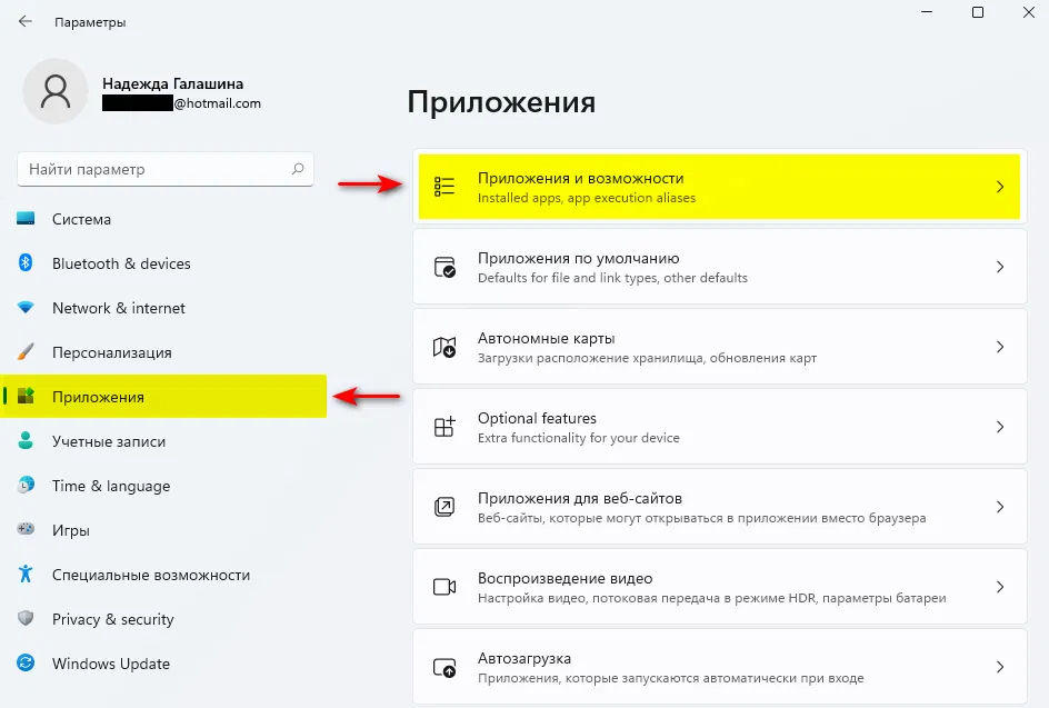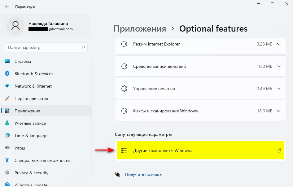 - Открыть Параметры ОС MS Windows 11, выбрать Приложения > Optional features > Другие компоненты Windows