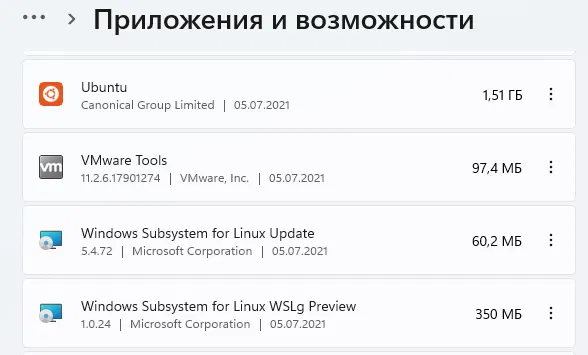 - Если в дальнейшем не планируется устанавливать дистрибутивы Linux, можно также удалить Windows Subsystem for Linux Update и Windows Subsystem for Linux Update WSLg Preview