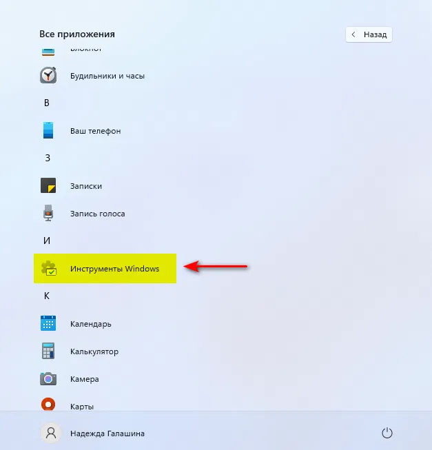 - Пуск > Все приложения > Инструменты Windows