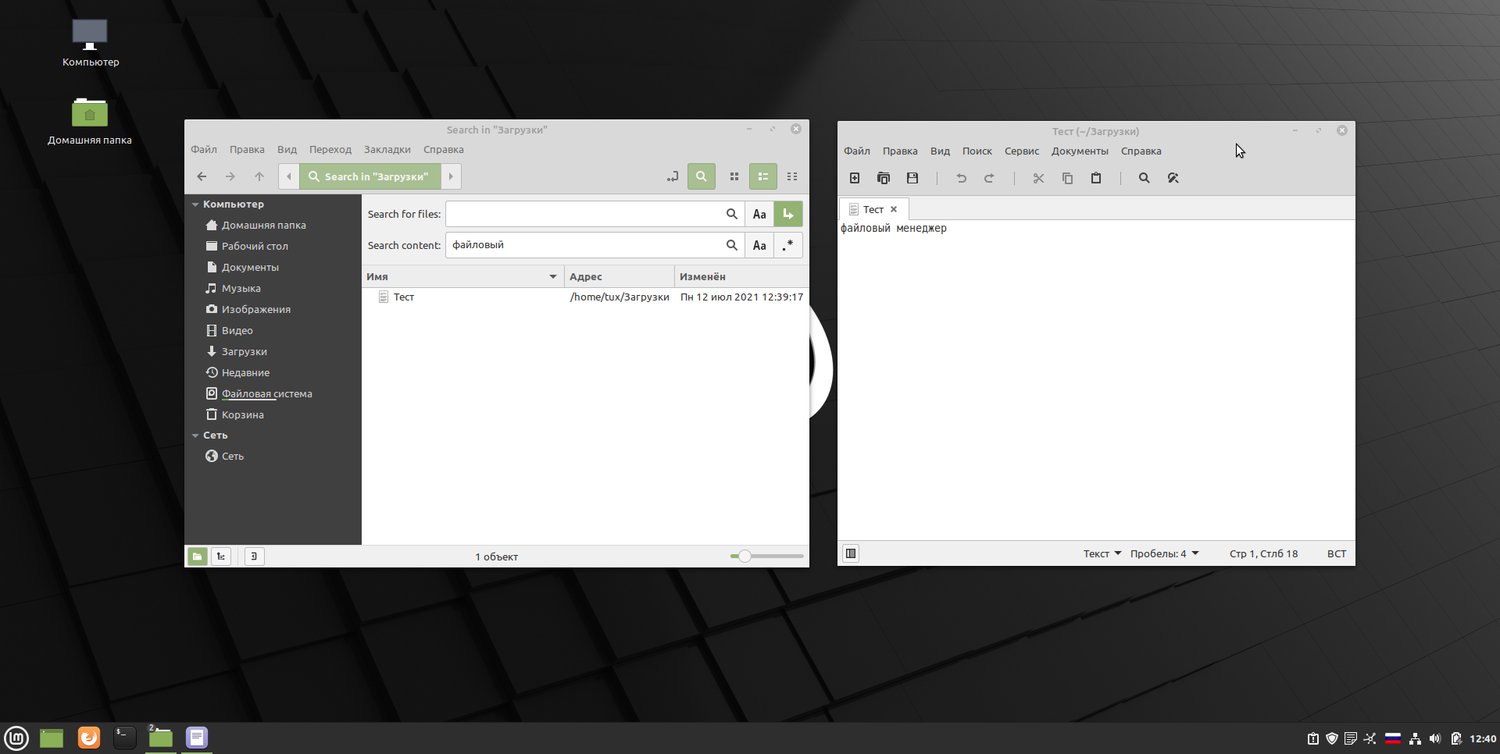 Файловый менеджер Cinnamon 5.0 обзавелся новой функцией поиска. Раньше поддерживался только поиск файлов, но в новом выпуске также поддерживается поиск содержимого. Поиск файлов поддерживает регулярные выражения и рекурсивный поиск папок.