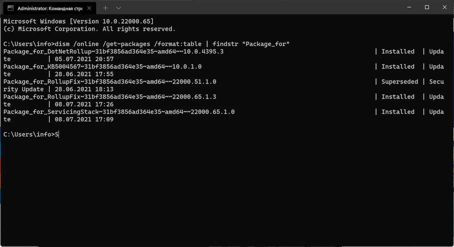 Чтобы установить накопительные обновления для .NET Framework (CAB-файлы), необходимо использовать встроенную системную утилиту DISM. Синтаксис Командной строки или PowerShell (можно использовать Windows Terminal) должен быть следующим (запуск от имени администратора):