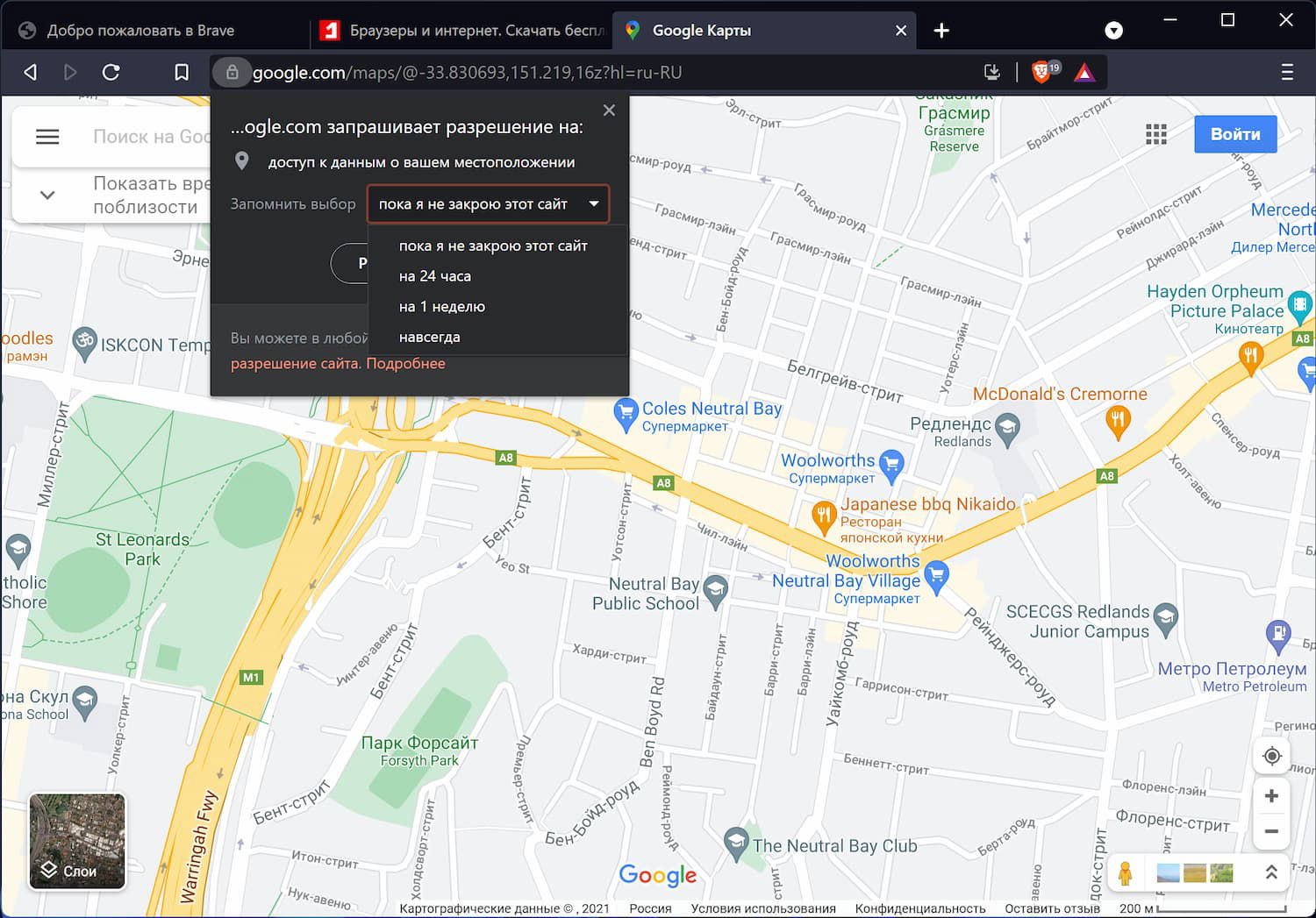 Большинство браузеров на Chromium предлагают всего два варианта управления разрешениями: Разрешить и Блокировать. По умолчанию браузер Mozilla Firefox устанавливает временные разрешения, если пользователь не поставит галочку для выдачи разрешения на постоянной основе. Аналогичная функция имеется в браузере Safari.