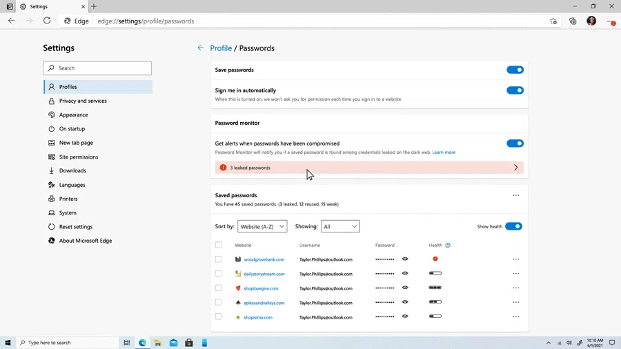 В Edge 92 был обновлен монитор паролей, который предупреждает при использовании недостаточно надежных паролей.