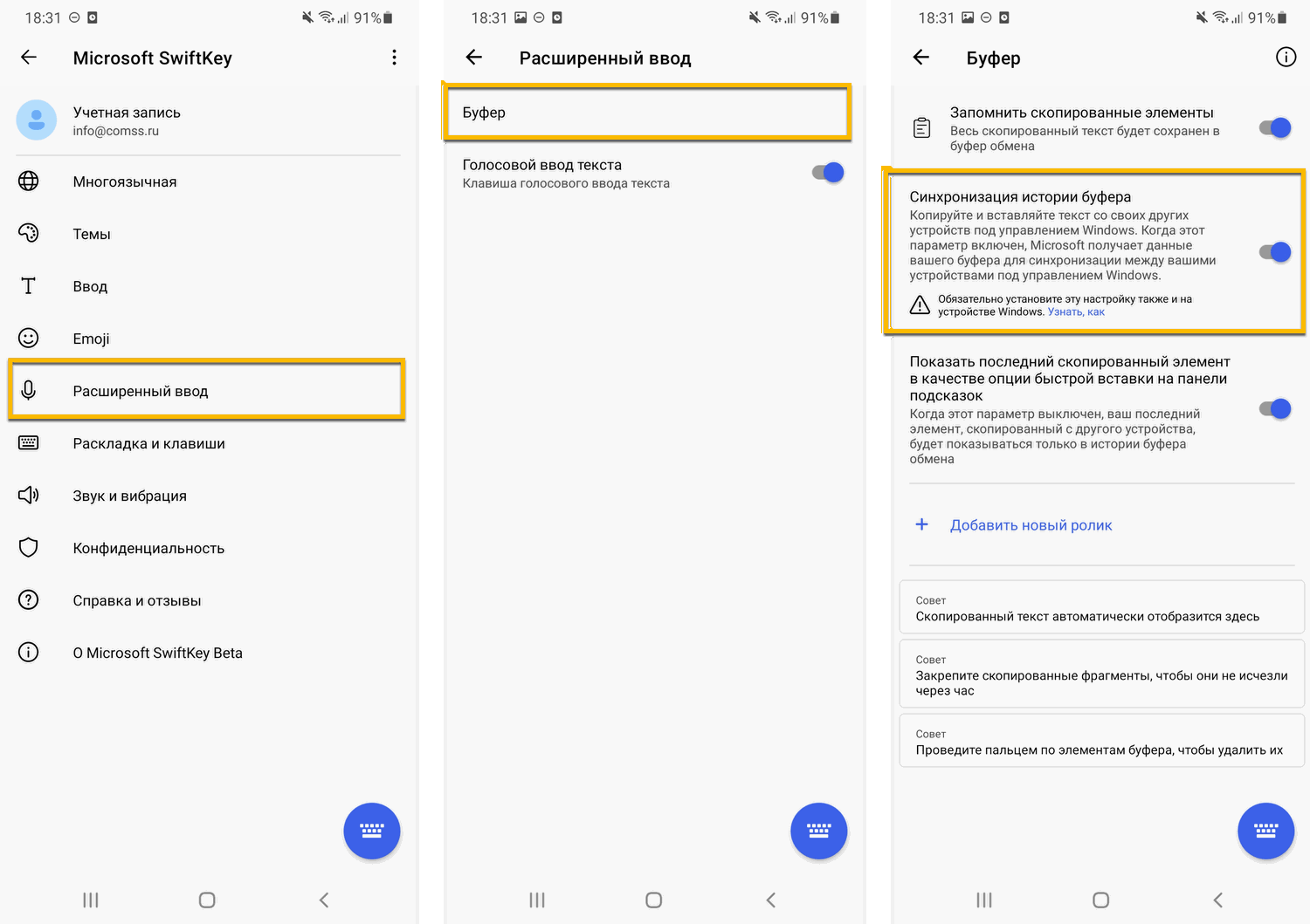 Данная функция будет развертываться поэтапно. Несмотря на то, что обновление SwiftKey Beta для Android вышло утром 3 августа, многие пользователи до сих пор не видят новую опцию. Если нововведение вам уже доступно, вы можете включить синхронизацию буфера обмена следующим способом: