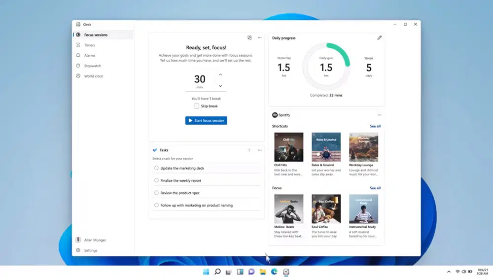 Another first look from the team...#FocusSessions on #Windows11 coming soon. This has been a game-changer for me, especially with @Spotify integration #Productivity #Creativity #WindowsInsiders pic.twitter.com/HfJh4niDiS