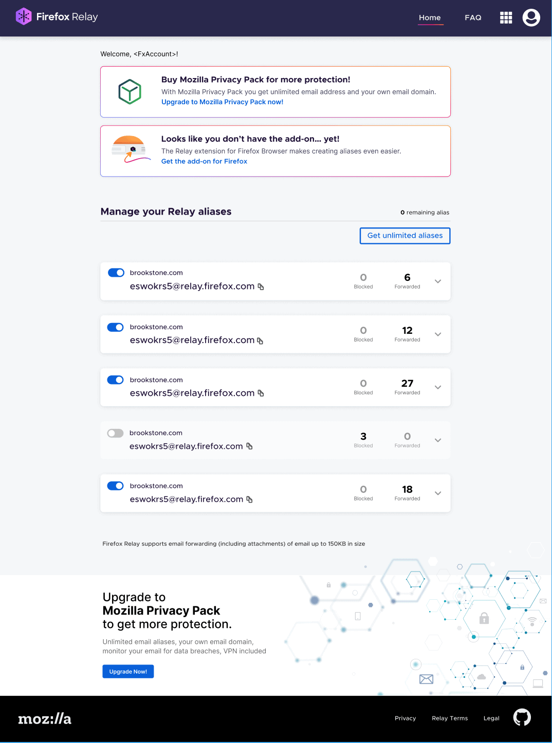 Также в Privacy Pack будет включена служба почтовых псевдонимов Firefox Relay и сервис проверки учетных данных на утечки Firefox Monitor.