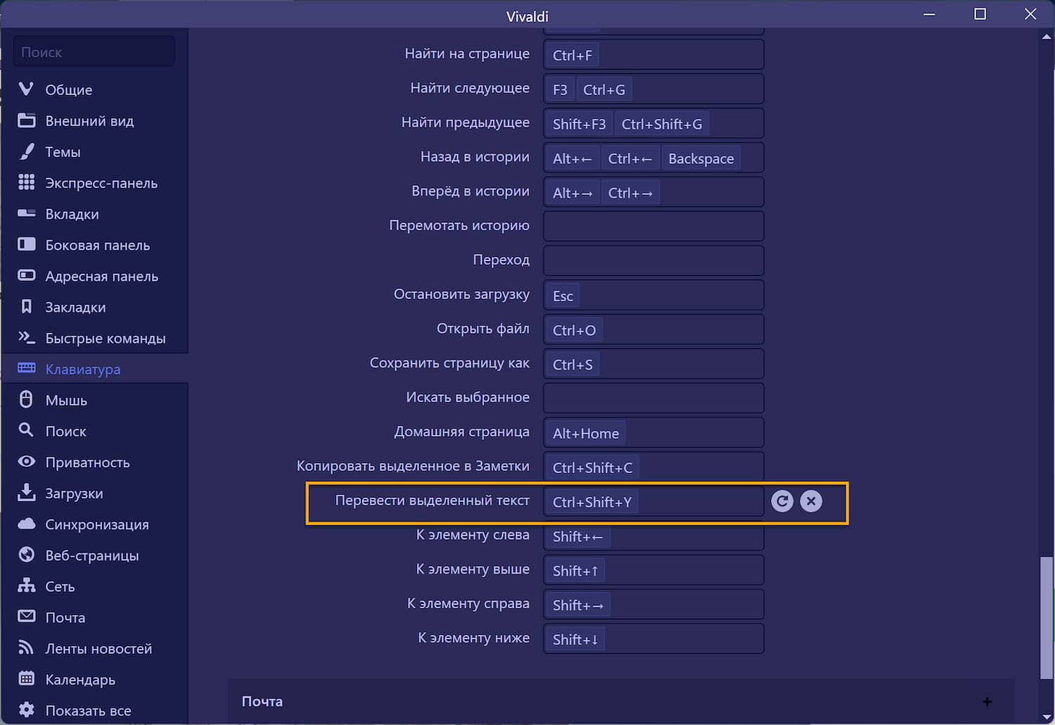 Просто перейдите в меню Vivaldi > Настройки > Клавиатура. Затем выберите секцию Страница и прокрутите до поля Перевести выбранный текст. Активируйте поле и добавьте желаемое сочетание клавиш. Назначенную комбинацию вы сможете использовать сразу же.