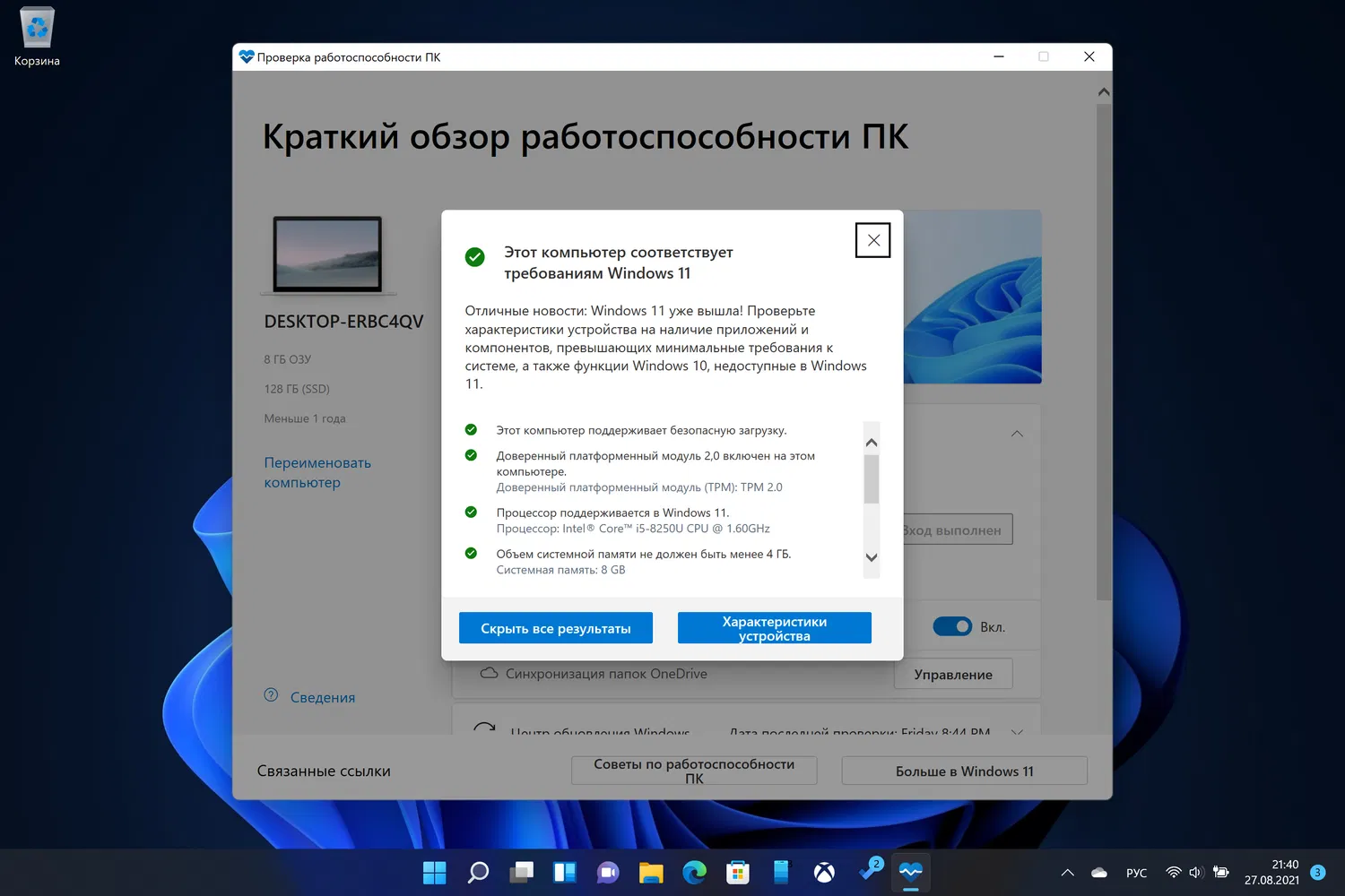 В то же время Microsoft выпустила специальный инструмент PC Health Check (Проверка работоспособности ПК), который позволял администраторами Windows проверить совместимость устройства с Windows 11.