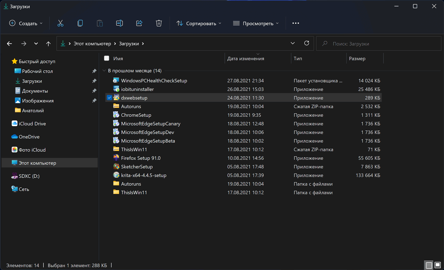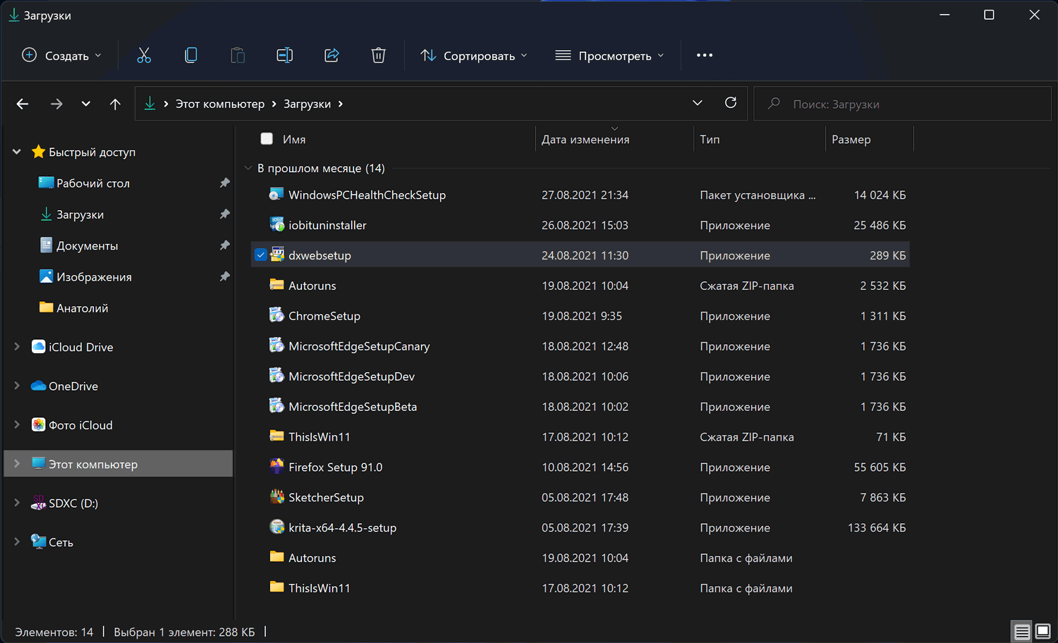 На скриншоте ниже показан режим отображения в Проводнике Windows 11 по умолчанию.