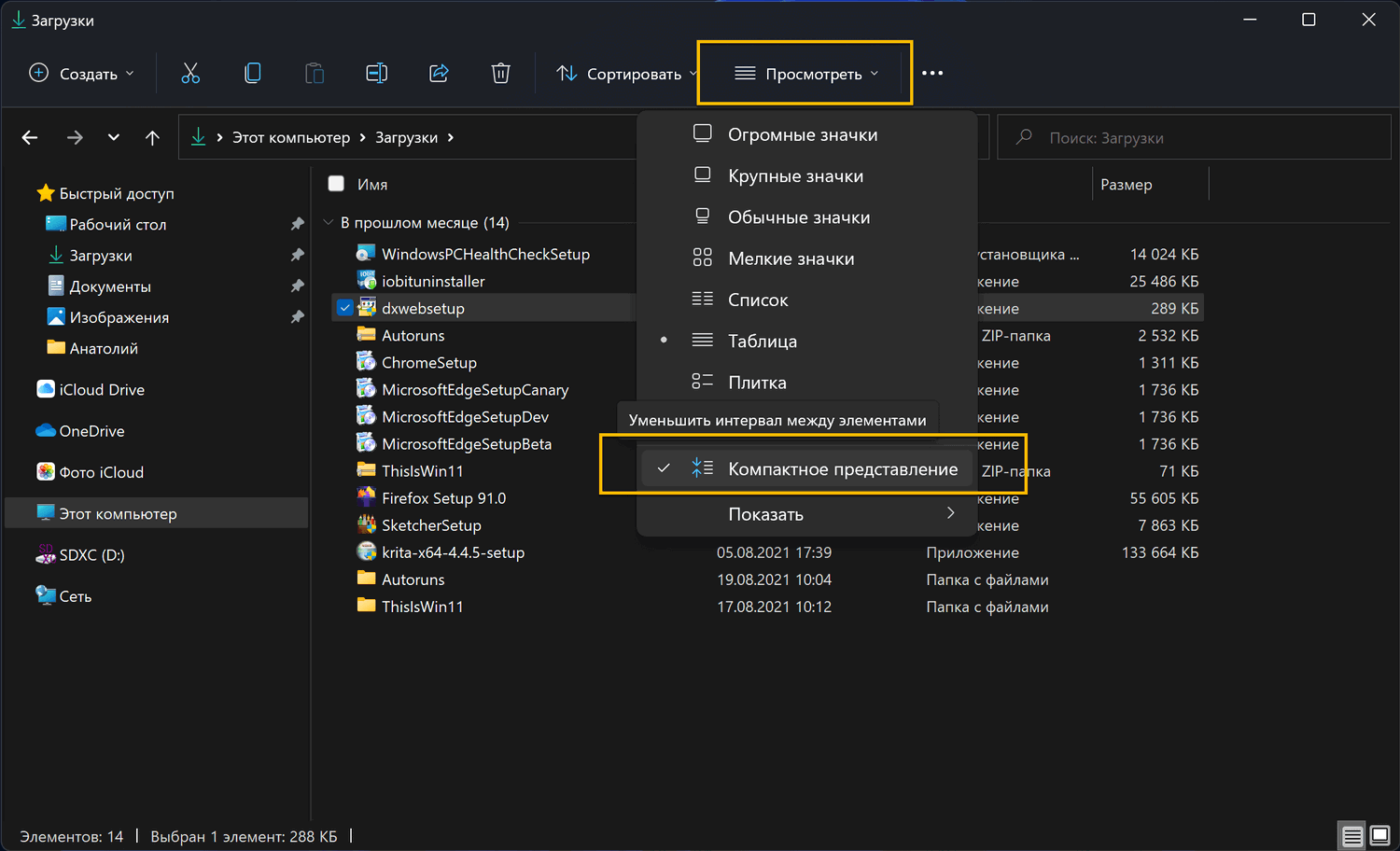 Если вы хотите, чтобы одновременно отображалось больше файлов и папок, то вы можете добиться этого, включив компактное представление.