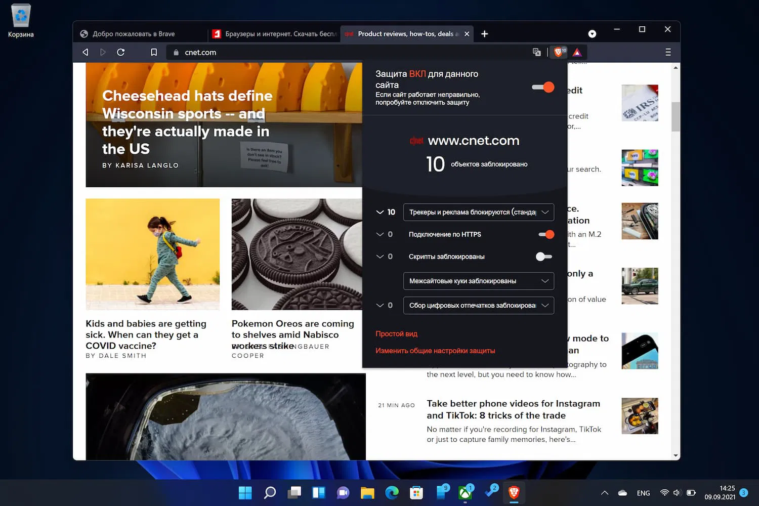 Brave — это браузер со встроенными функциями конфиденциальности. По умолчанию, он блокирует средства отслеживания рекламы, межсайтовые куки-файлы и фингерпринтинг. В Brave поддерживается режим защиты «Агрессивный» для блокировки трекеров и рекламы и режим «Строгий» для блокировки сборщиков цифровых отпечатков. Brave построен на кодовой базе Chromium, а это значит, что вы сможете установить в браузер любимые расширения Chrome.