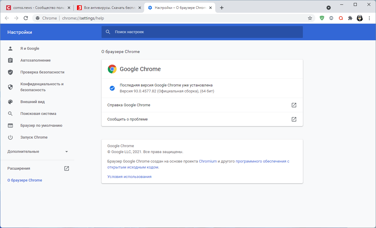 Компания Google 13 сентября 2021 года выпустила обновление безопасности для своего веб-браузера Google Chrome. Обновление уже доступно, и большинство пользователей Chrome должны получить его автоматически благодаря встроенной функции обновления. Однако, в некоторых случаях обновление до новой версии может занять некоторое время, в таком случае воспользуйтесь обновлением “поверх установленной версии” для обновления браузера до последней версии.