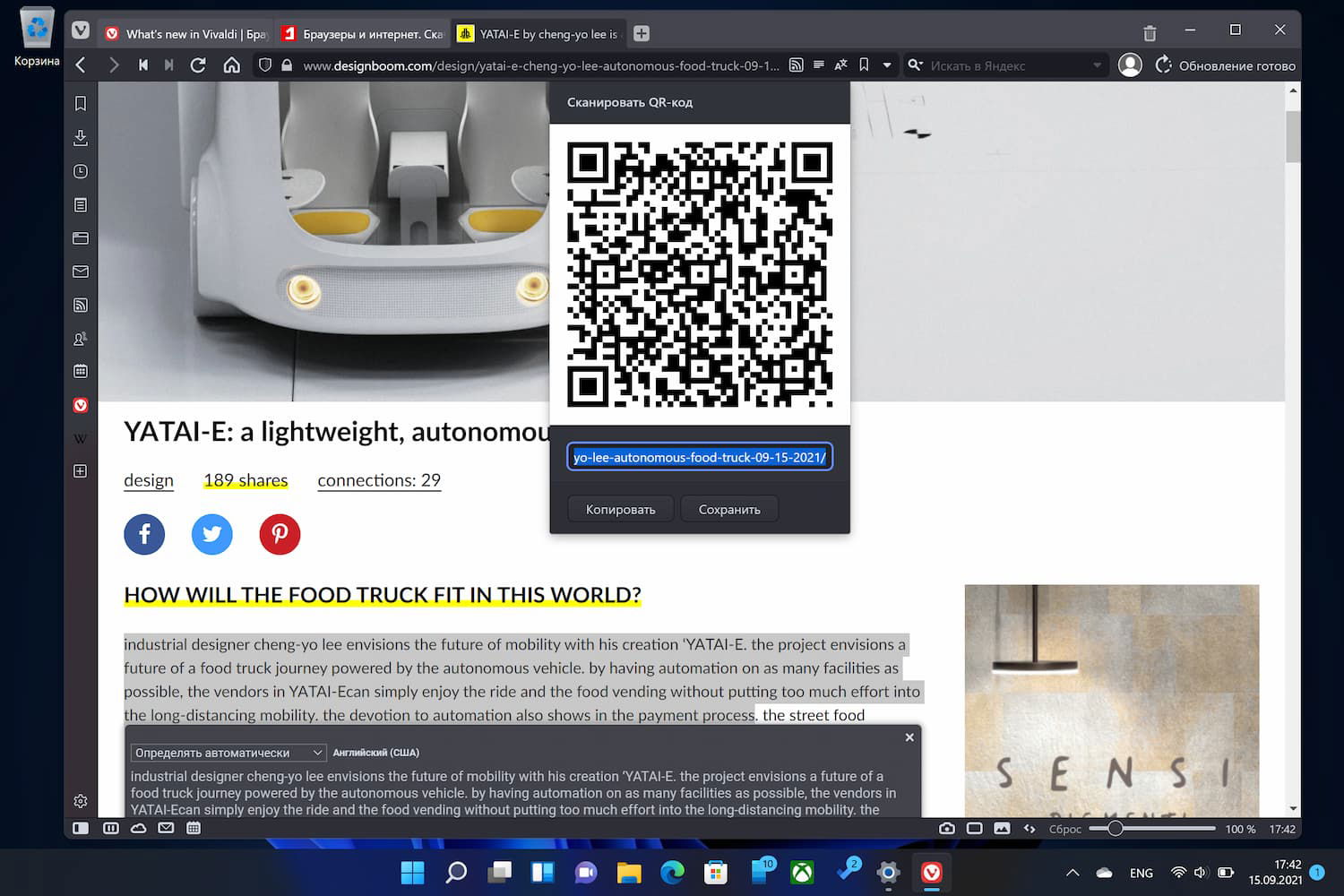 В десктопной версии Vivaldi появился еще один способ поделиться контентом — с помощью QR-кодов.