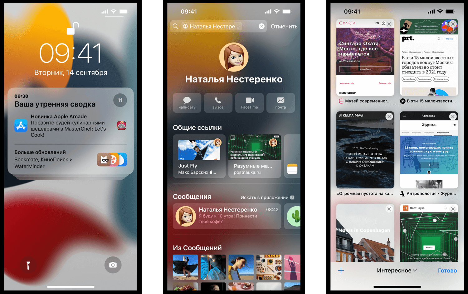 Новый режим «Фокусирование» позволит работать над определенной задачей, не отвлекаясь на уведомления. Говоря об уведомлениях, iOS 15 улучшает и их, добавляя фотографии контактов и значки приложений на экран блокировки. Что касается улучшений Safari в iOS 15, то панель вкладок браузера перемещена вниз, что упрощает переключение между вкладками.